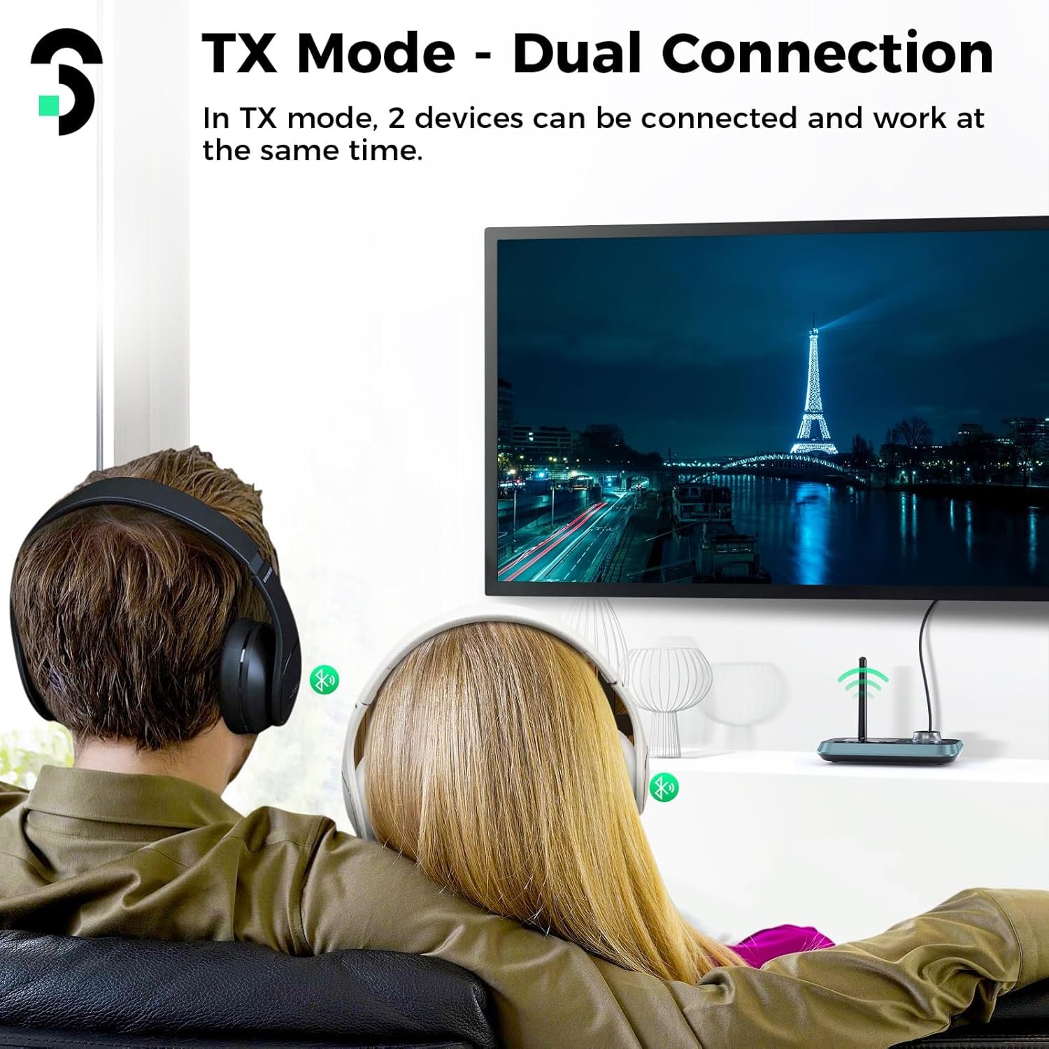 - 【Dual Link & Auto Reconnect】Bluetooth audio transmitter supports Dual Stream in TX Mode, which allows you to connect two Bluetooth headphones or speakers at the same time. It also can automatically connects to your previously paired devices when you turn it on.